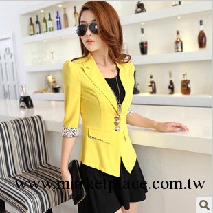 9021#2013秋季韓版氣質修身小西裝七分袖豹紋糖果色女士小西服