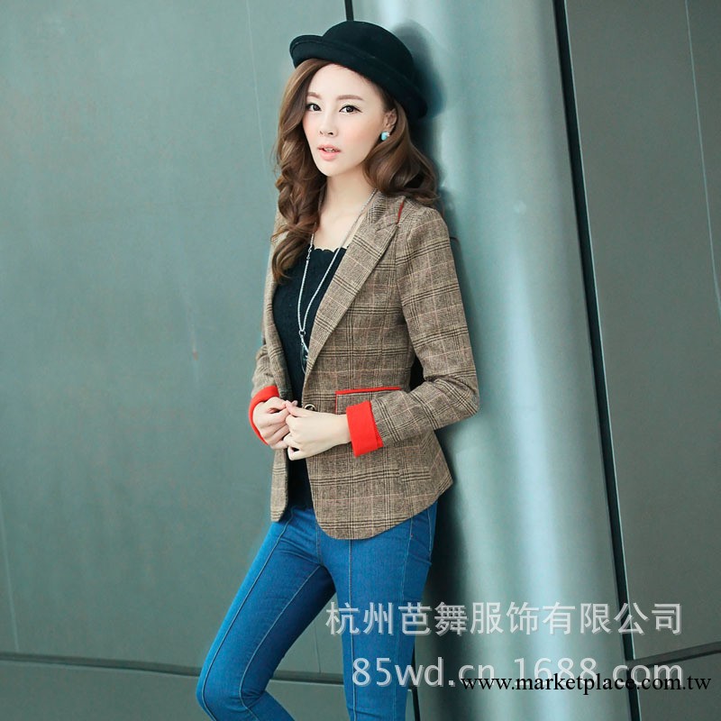 女裝秋裝新款小西服批發韓版英倫格子修身女 小西裝 小外套86027