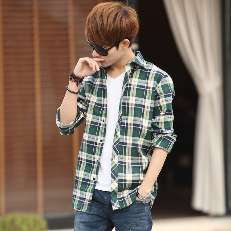2016春季新款青少年男士休閒格子襯衫韓版修身長袖男士襯衣潮批發