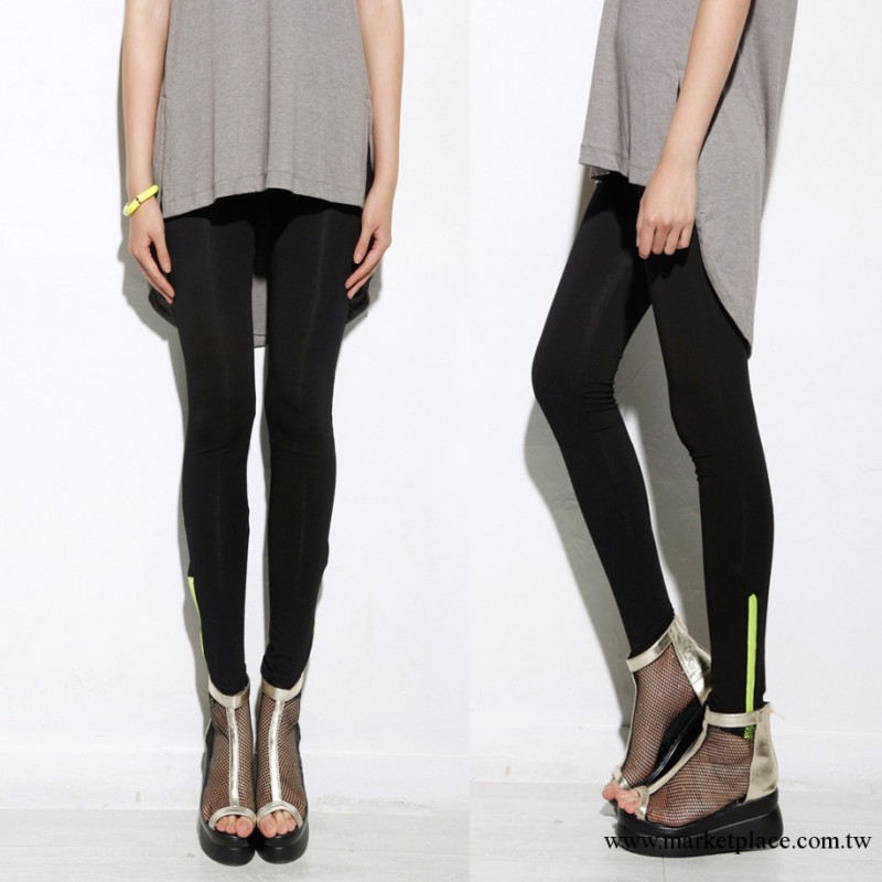 2013潮單品打底褲韓國原單粗螺紋棉側熒光拉鏈打底褲九分褲批發