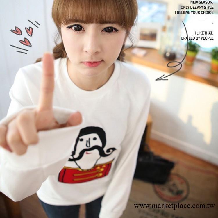 2013秋冬新款外貿原單韓國女式圓領長袖套頭寬松薄款純棉衛衣