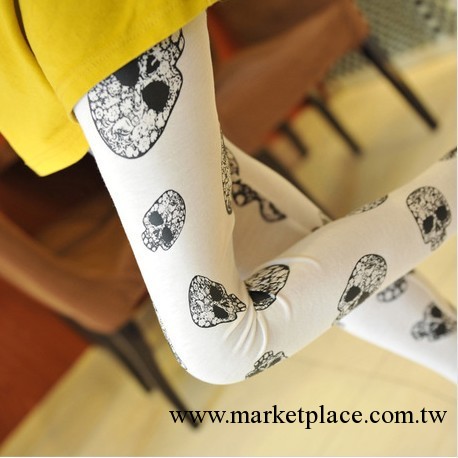 2013新款秋季 百搭韓國原單印花時尚全棉九分骷髏頭打底褲批發