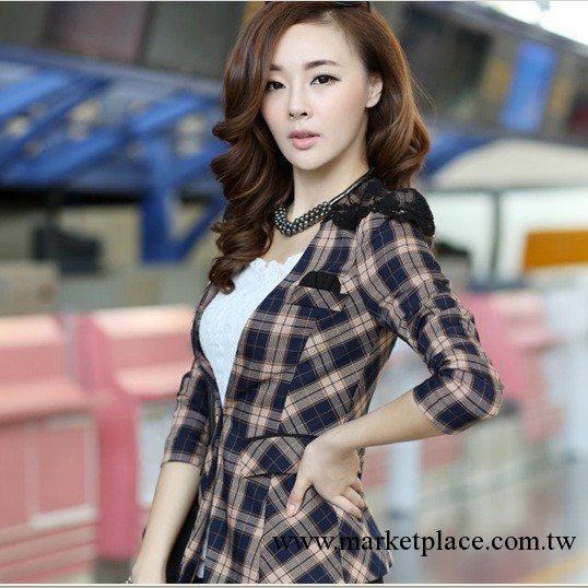 外貿原單秋裝蕾絲格子修身小西裝韓版女裝外套批發HM1663免費加盟