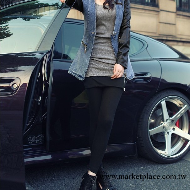D7005 韓國原單 秋裝新款包臀假兩件全棉拉鏈九分褲打底裙褲