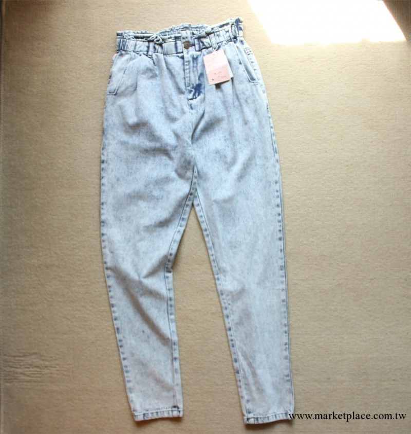 日本原單SKY BOMBER松緊高腰 水洗休閑哈倫牛仔褲