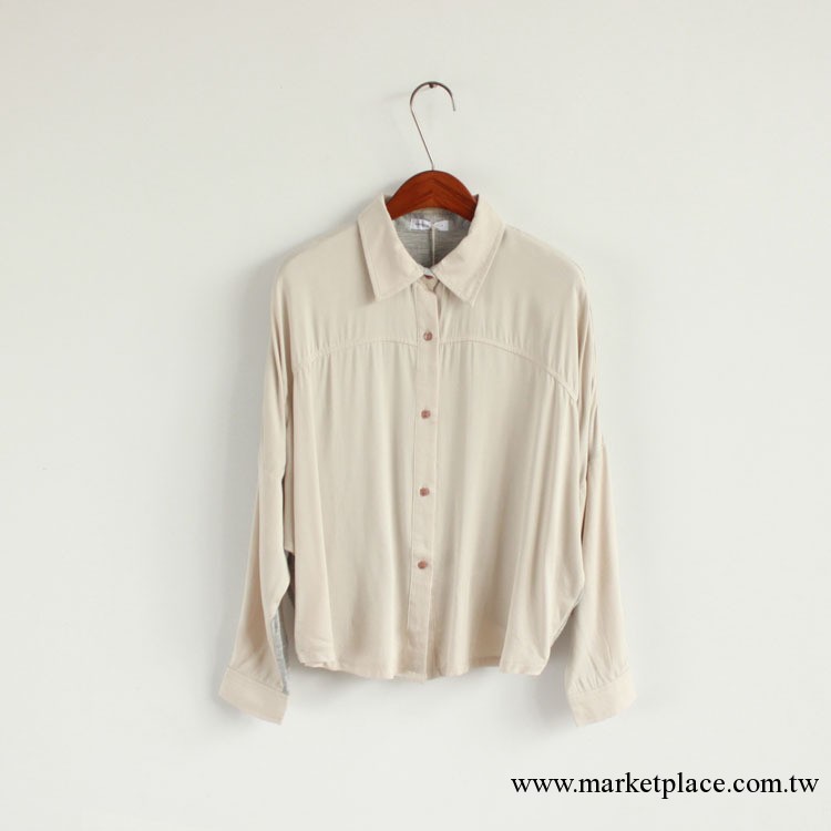 韓國原單13秋季新款復古寬松大波點寬松麻料襯衣襯衫3924