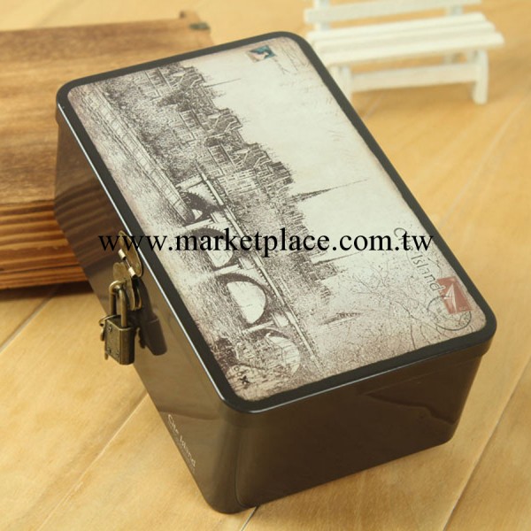 韓國精品批發 浪漫之都大號鎖扣鐵盒 326253桌面帶鎖收納盒