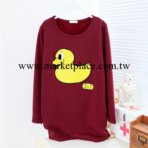 2013夏季新品 韓國時尚 百搭寬松小黃鴨繡花 加絨長袖t恤311511