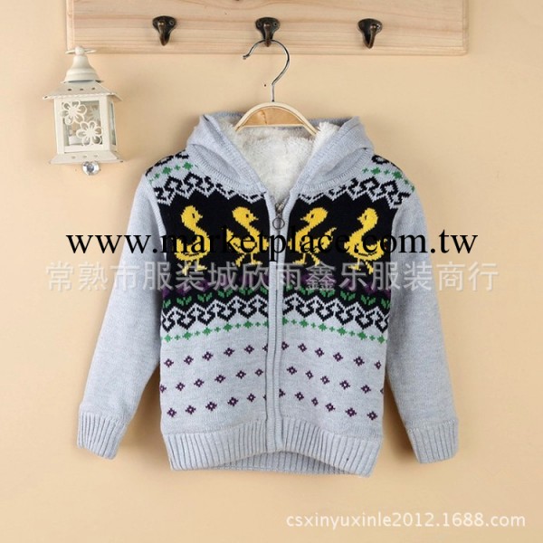 韓版女童全棉加絨加厚拉鏈衫~中小童卡通小鴨刺繡連帽毛衣外套