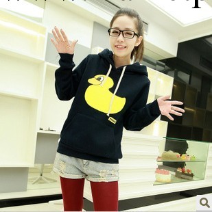 2013時尚秋冬加絨加厚小黃鴨印花學生裝可愛俏皮套頭連帽衛衣女