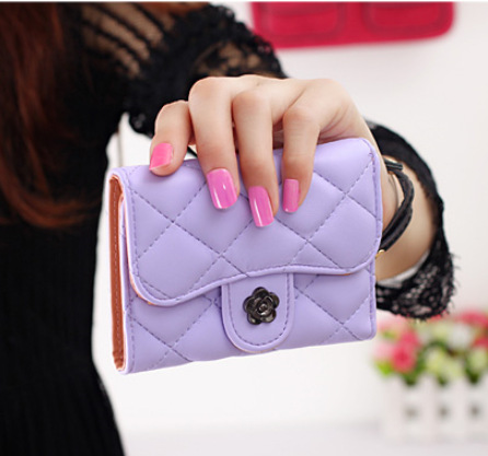 2016新款潮韓版小錢包女士短款三折搭扣薄款菱格子錢包錢夾零錢包