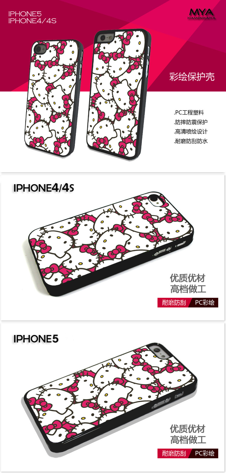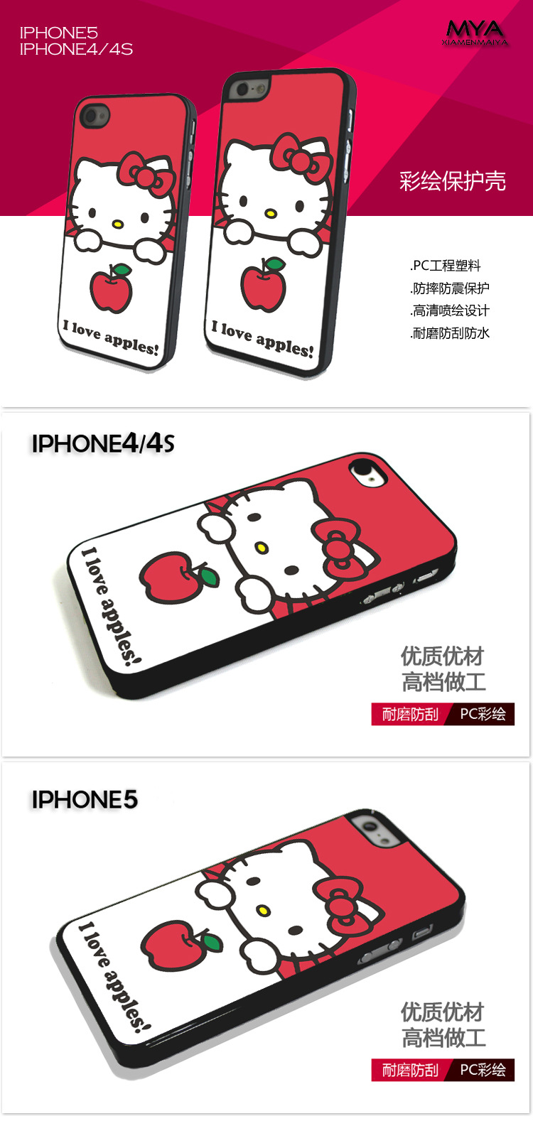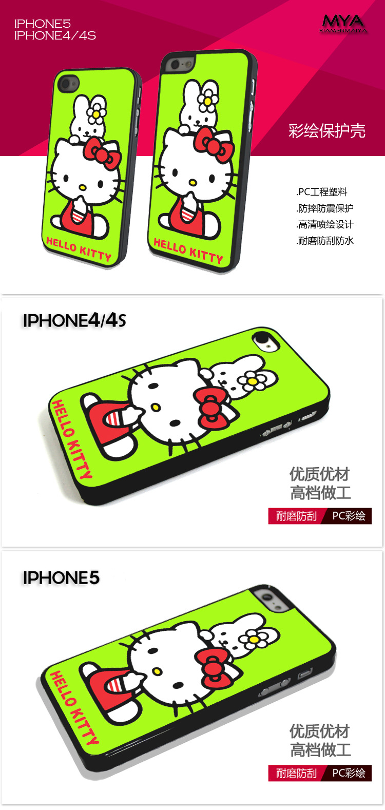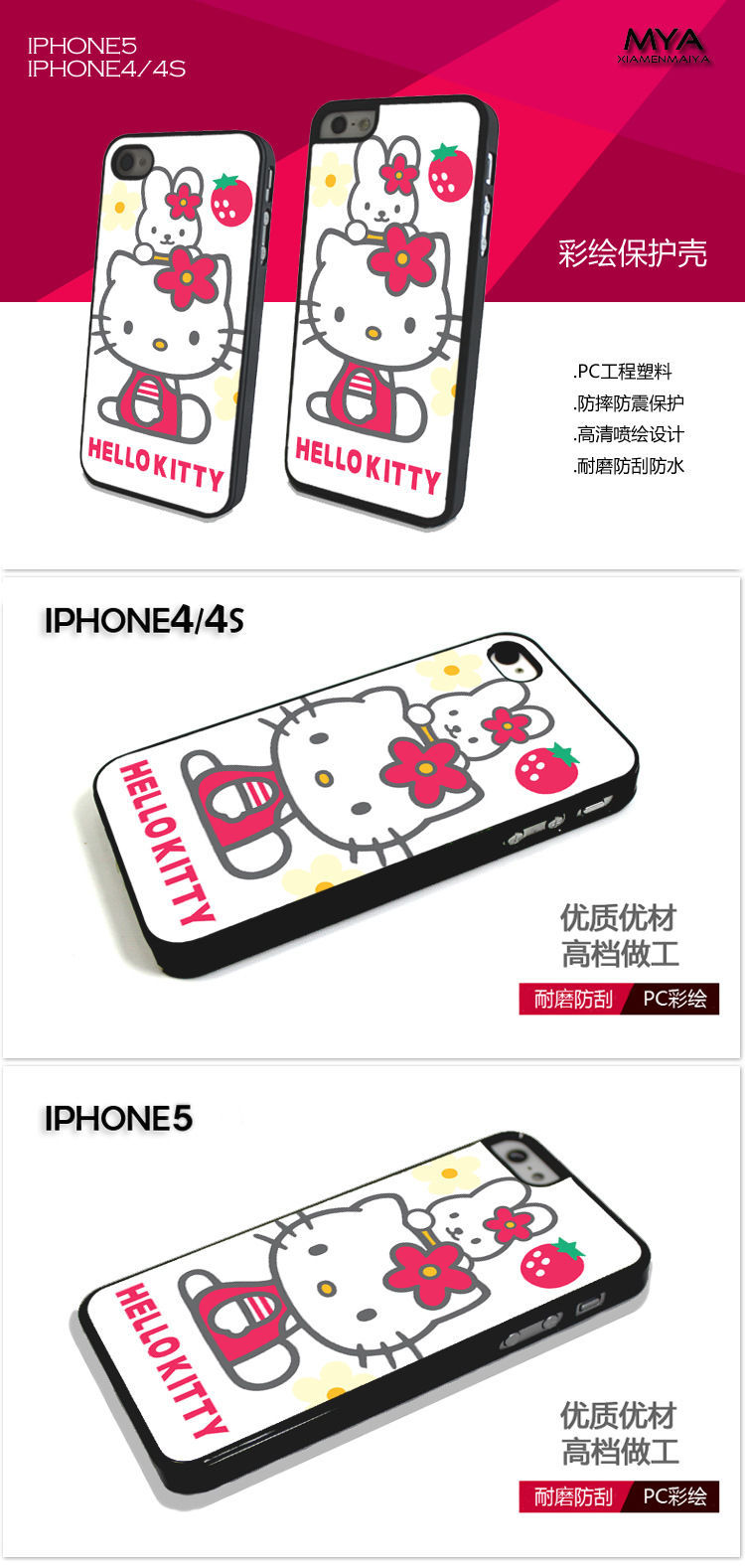 專業批發蘋果手機殼 新款hello Kitty手機保護套 kt貓亮面款