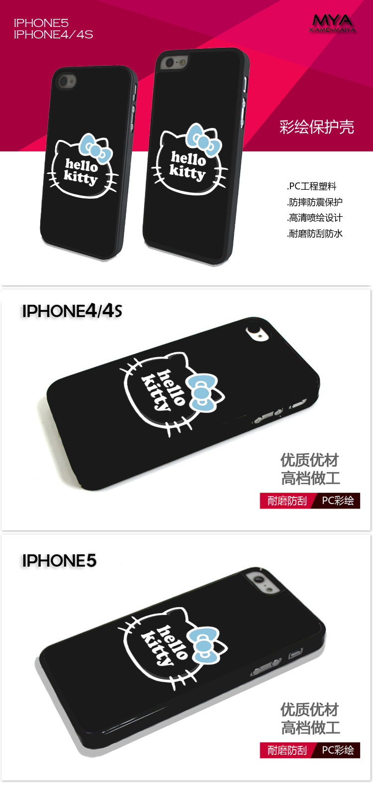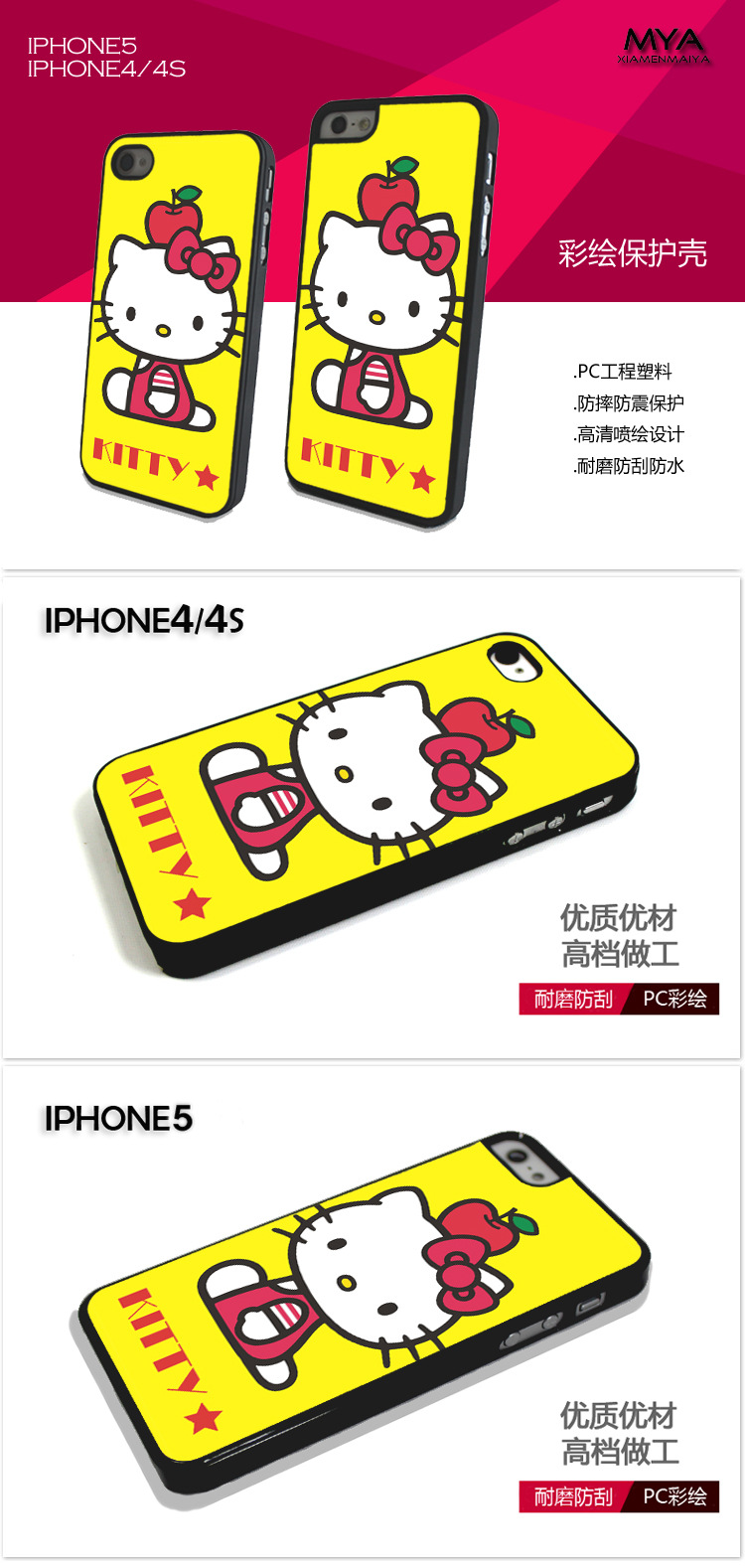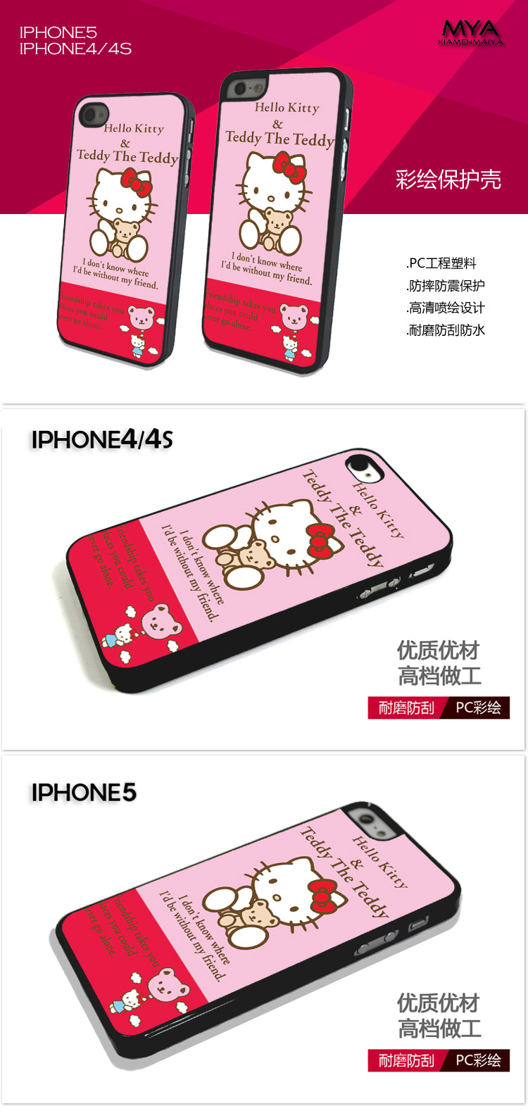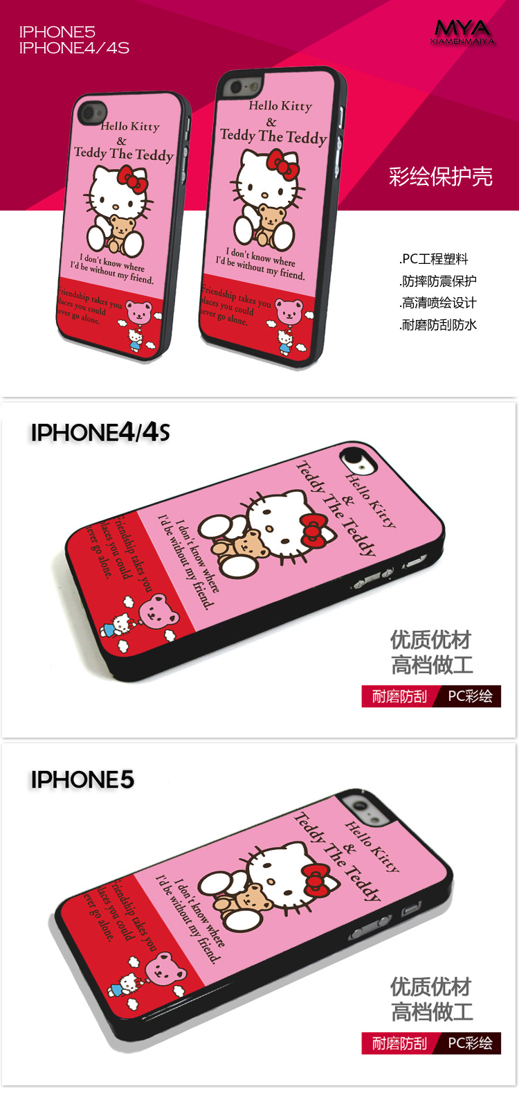 專業批發蘋果手機殼 新款hello Kitty手機保護套 kt貓亮面款