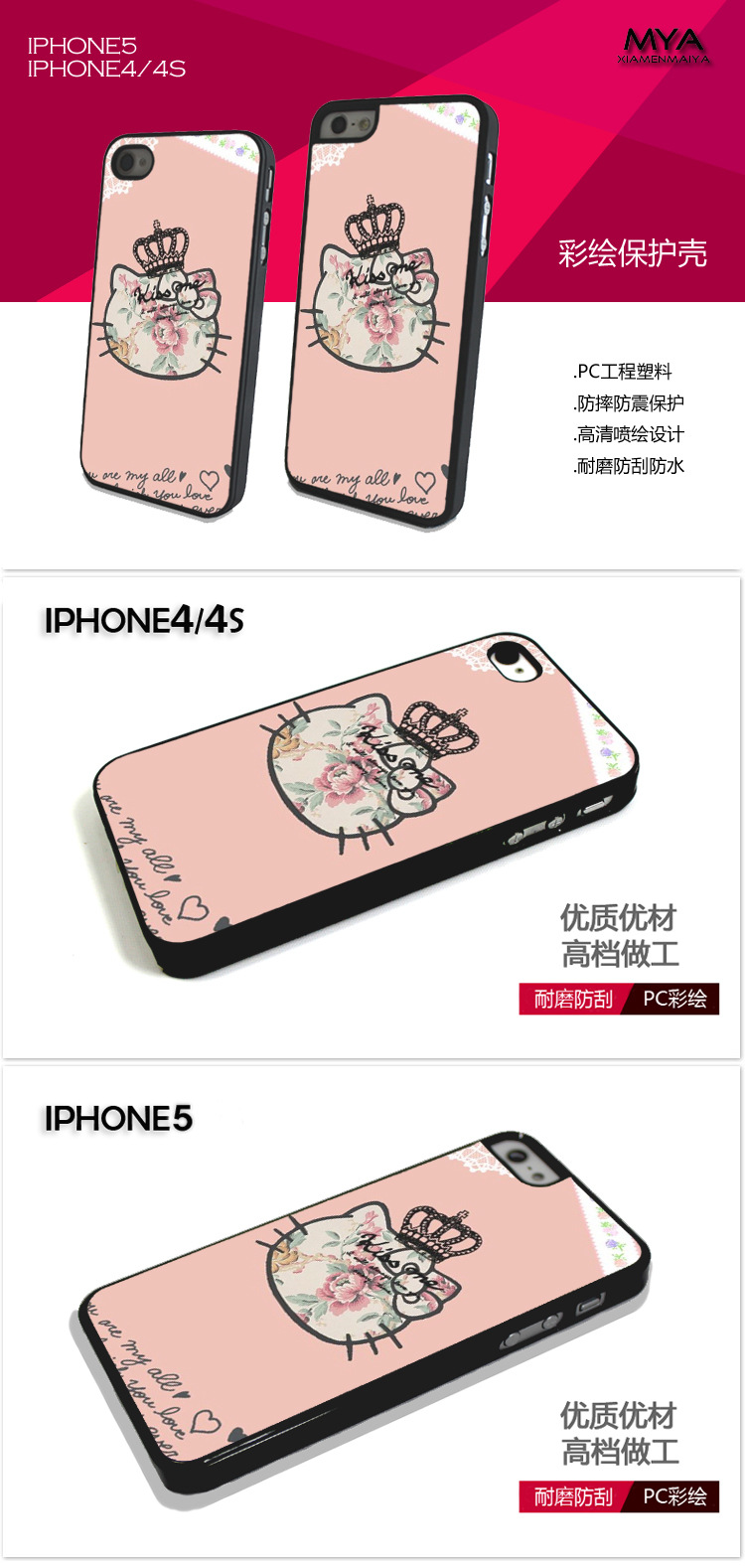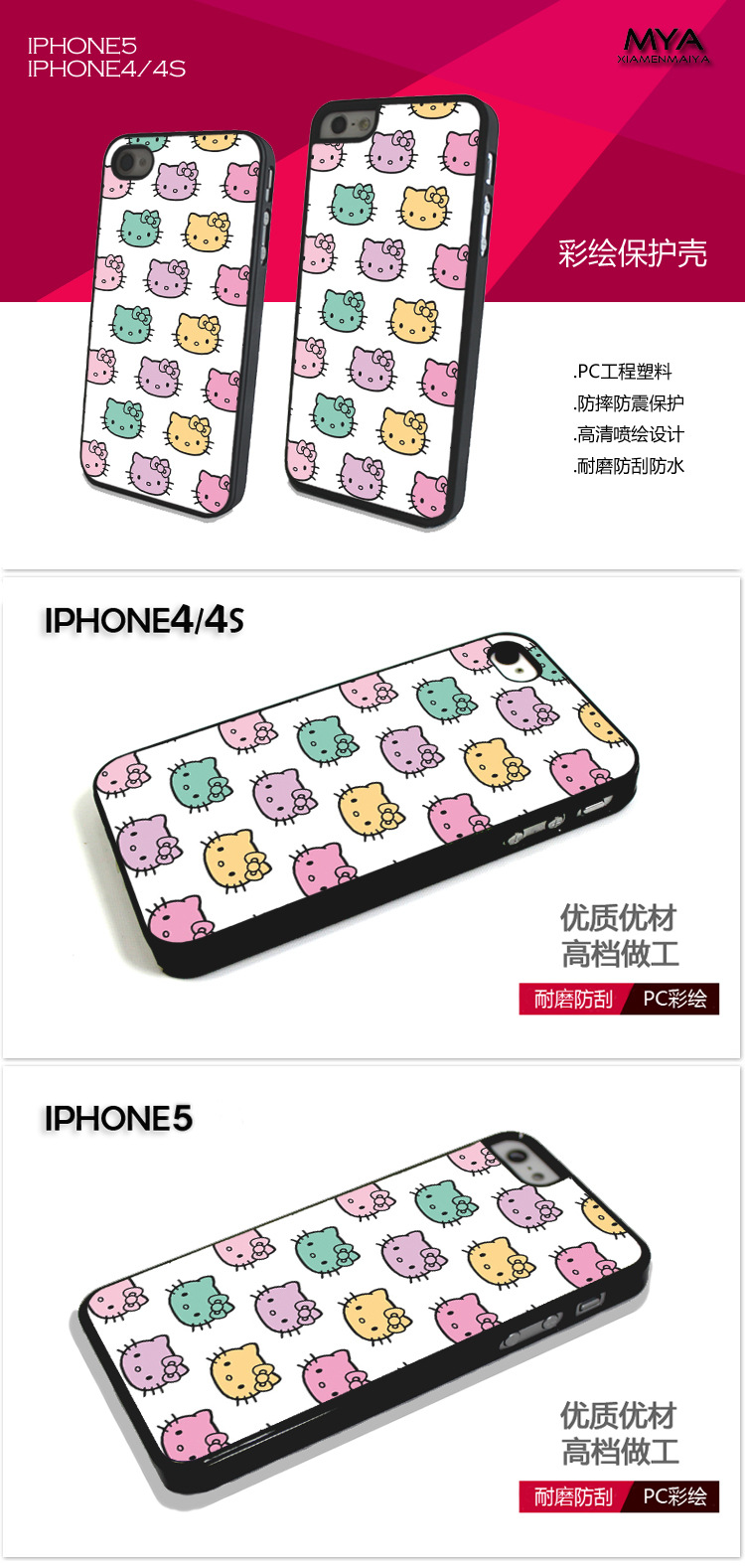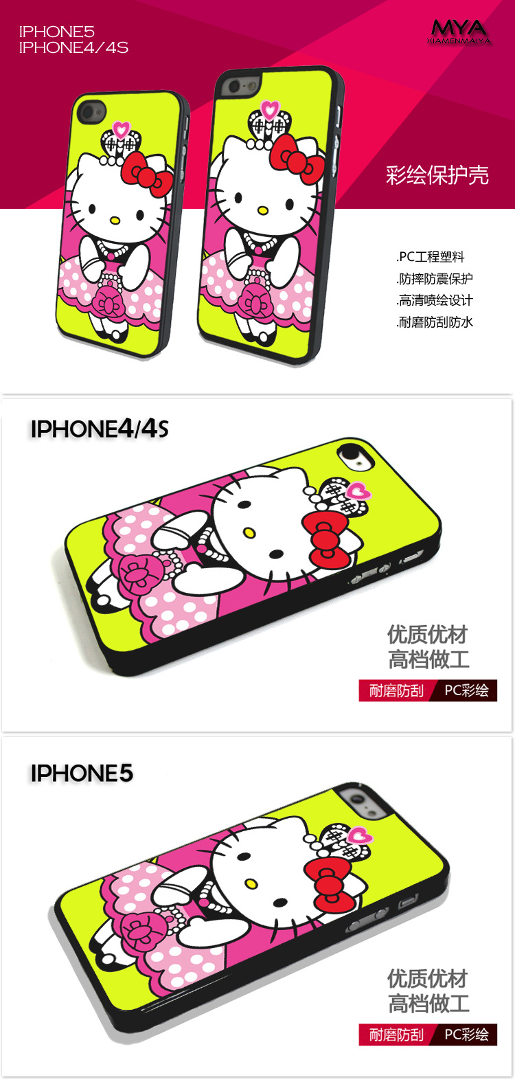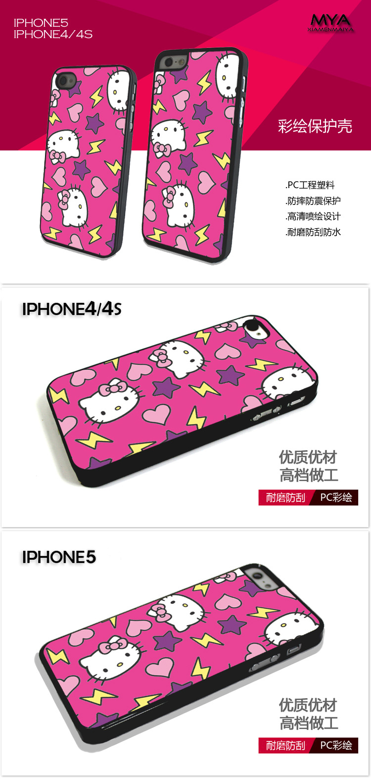 專業批發蘋果手機殼 新款hello Kitty手機保護套 kt貓亮面款