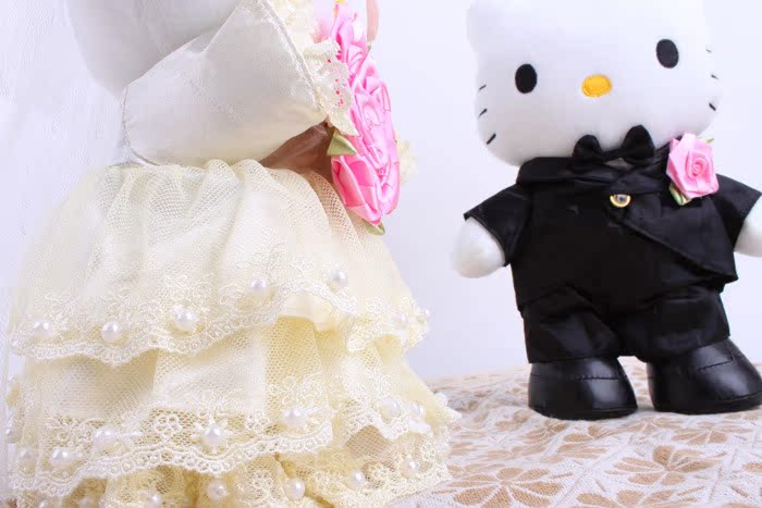 做工非常非常精致的公仔,男熊熊一身燕尾服,女熊熊蕾絲婚紗裙非常漂亮