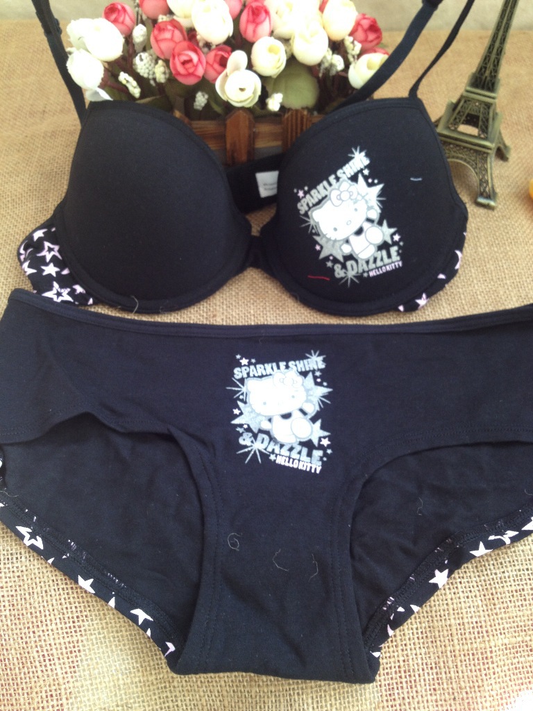 Hello kitty燙鉆胸罩套裝,大量供貨批發 外貿內衣 外貿胸罩套裝