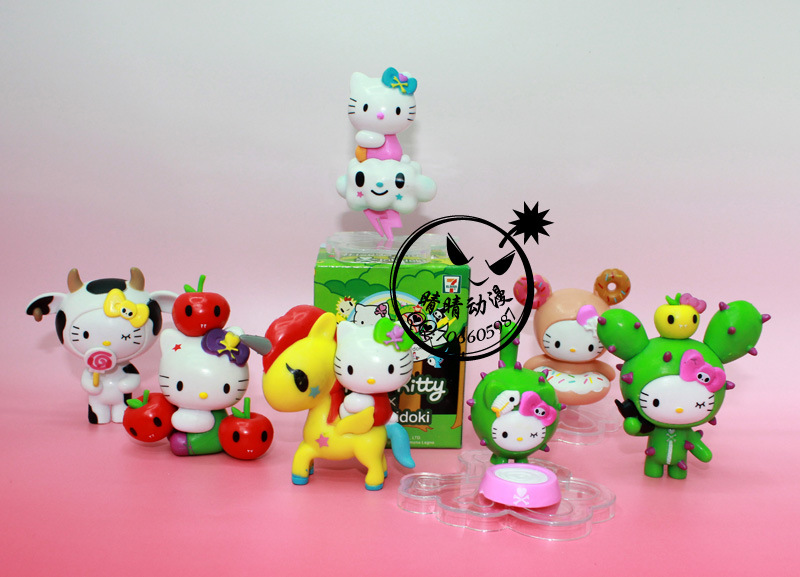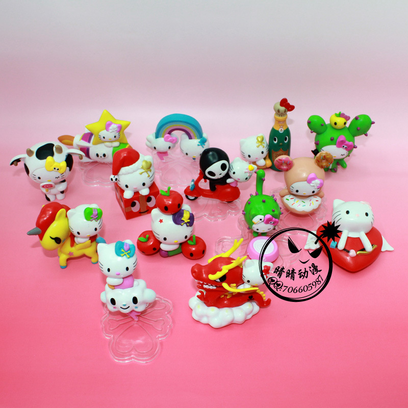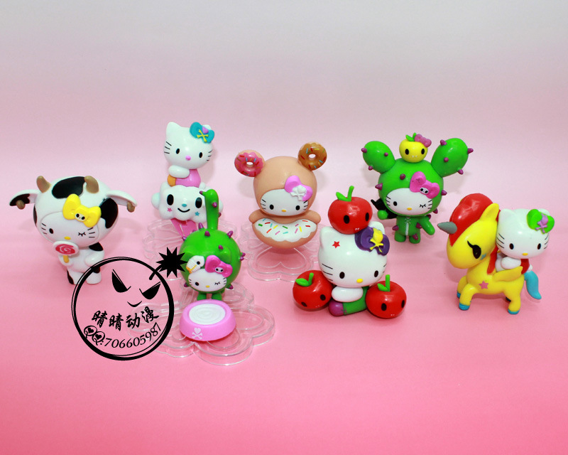 產品名稱:2代7款凱特貓公仔 產品高度:6-7.8CM 產品材料:PVC 產品包裝:彩盒 盒裝尺寸:24.8*22.3*7.8CM 裝箱數量:60套/箱 人物介紹: Kitty 貓誕生於1974年,當時三麗鷗公司預定推出一款小錢包,上面的圖案希望能設計出一個嶄新的人物。而Kitty的第一代設計師清水侑子在設計之初想到小孩子喜歡的動物,不外乎小熊、小狗和小貓而已,由於前兩者早已推出過,因此她便決定采用最喜歡的貓咪瞭,因此這隻系上紅色蝴蝶結的小白貓便出現在錢包上。當時信太郎並不是很喜歡它,但是不可思議的是,這隻小貓卻一發不可收拾地流行起來 有這樣一隻小貓,有嘴巴(作者已經表示有嘴巴瞭),臉蛋圓圓的,左耳上紮著一個蝴蝶結,還有一截小尾巴,她的名字叫凱蒂貓 (Hello Kitty),吉蒂貓或無嘴貓。 如今,Kitty 貓已經30多歲瞭,這對一隻貓來說是夠老的瞭。而且在日本這樣一個時尚潮流快速更替的市場上,一個36歲的卡通品牌要始終保持新鮮的確很不容易。但是三麗鷗卻始終能做到和時尚潮流一樣快速跟進,對時尚脈搏的感悟及把握是 Kitty 貓成功的關鍵因素。每個月, Kitty 貓都會有500個新產品上市並且淘汰500個舊產品,它一直在調整自己的產品線,從而使得自己的產品能符合不同的潮流趨勢。80年代初,當泰迪熊橫掃日本之時,人們可以見到 Kitty 緊抓著一隻小熊作為她的朋友。80年代中期幾乎所有中產階級傢庭的日本小女孩都學鋼琴,於是彈三角鋼琴的 Kitty 貓出現瞭……