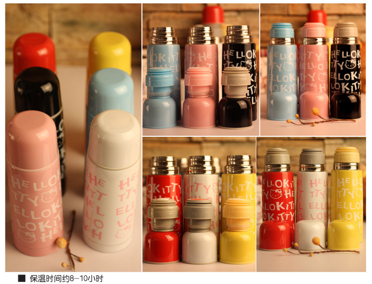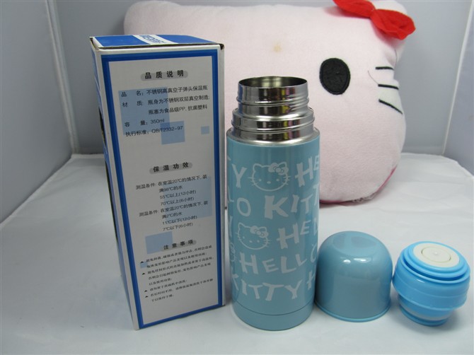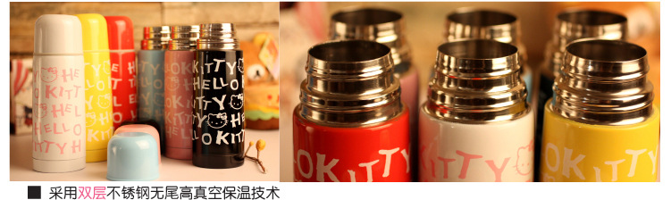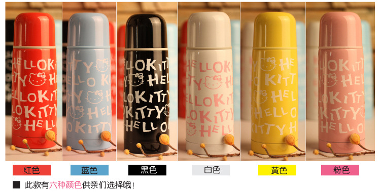 保溫時間長,方便實用。內為按鈕式開關,防止時間長因熱漲冷縮,而擰不開蓋子。獨特的圓弧杯口設計,寬厚、圓滑,直接飲用,口感舒適。可愛的韓版kitty圖案烤漆。獨特的外型設計更具人性化和個性化,可放冰塊,也可放熱飲。攜帶方便.時尚的色調,盡顯您的高貴典雅。