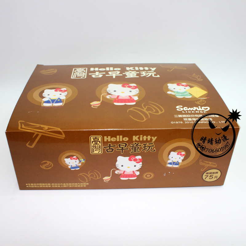 產品名稱:古玩復古版11款Hello Kitty小飾品盒 產品高度:8CM 產品材料:PVC 產品包裝:彩盒 盒裝尺寸:28*13*8CM 裝箱數量:30套/箱 人物介紹: Kitty 貓誕生於1974年,當時三麗鷗公司預定推出一款小錢包,上面的圖案希望能設計出一個嶄新的人物。而Kitty的第一代設計師清水侑子在設計之初想到小孩子喜歡的動物,不外乎小熊、小狗和小貓而已,由於前兩者早已推出過,因此她便決定采用最喜歡的貓咪瞭,因此這隻系上紅色蝴蝶結的小白貓便出現在錢包上。當時信太郎並不是很喜歡它,但是不可思議的是,這隻小貓卻一發不可收拾地流行起來 有這樣一隻小貓,有嘴巴(作者已經表示有嘴巴瞭),臉蛋圓圓的,左耳上紮著一個蝴蝶結,還有一截小尾巴,她的名字叫凱蒂貓 (Hello Kitty),吉蒂貓或無嘴貓。 如今,Kitty 貓已經30多歲瞭,這對一隻貓來說是夠老的瞭。而且在日本這樣一個時尚潮流快速更替的市場上,一個36歲的卡通品牌要始終保持新鮮的確很不容易。但是三麗鷗卻始終能做到和時尚潮流一樣快速跟進,對時尚脈搏的感悟及把握是 Kitty 貓成功的關鍵因素。每個月, Kitty 貓都會有500個新產品上市並且淘汰500個舊產品,它一直在調整自己的產品線,從而使得自己的產品能符合不同的潮流趨勢。80年代初,當泰迪熊橫掃日本之時,人們可以見到 Kitty 緊抓著一隻小熊作為她的朋友。80年代中期幾乎所有中產階級傢庭的日本小女孩都學鋼琴,於是彈三角鋼琴的 Kitty 貓出現瞭……