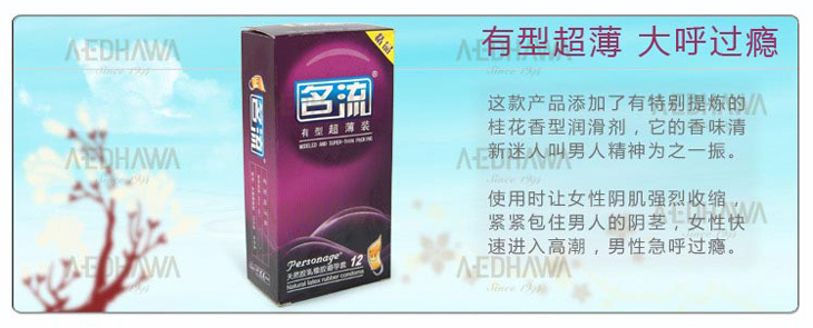 品牌介紹 名流安全套(英文名:personage)是上海名邦橡膠制品有限公司旗下品牌,中國大陸知名安全套品牌之一,並且被消費者評為“中國潤滑效果極好的避孕套(超過國際品牌安全套潤滑效果50%)”。