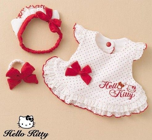 HELLO KITTY 蝴蝶結 吊脖裙+腕帶+太陽帽三件套