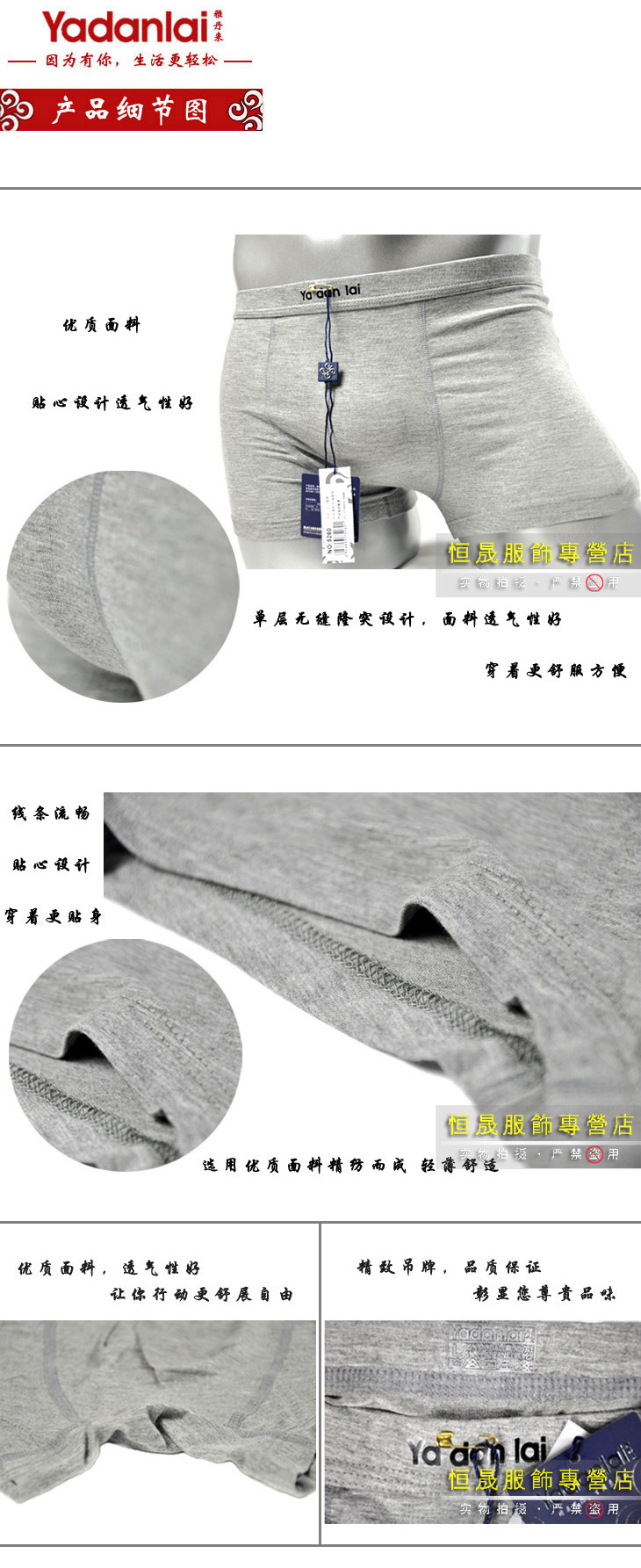 雅丹來商城正品內褲男士平角純莫代爾內褲男士品牌純色專利內褲