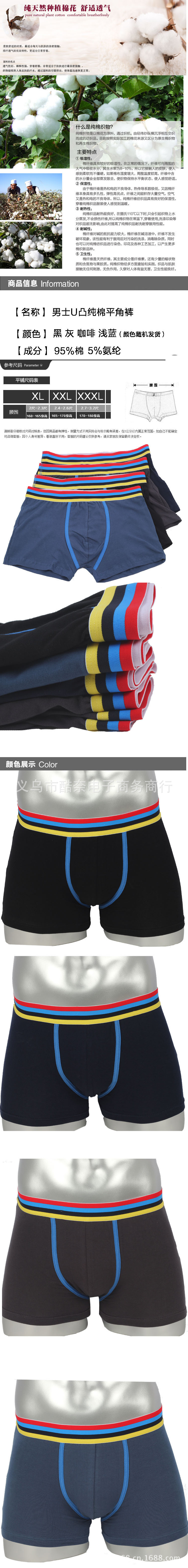 特價批發 高品質男士平角內褲 全棉寬邊U凸設計 透氣舒適男四角褲