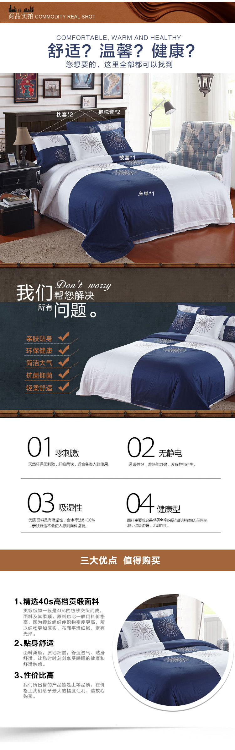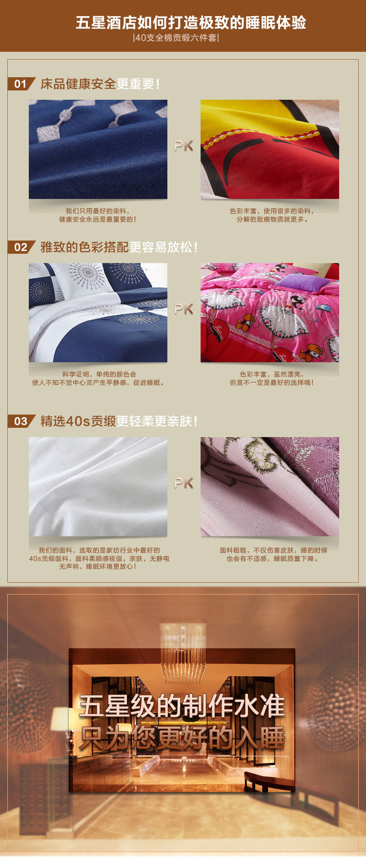 - 40支高支高密全精梳貢緞麵料,縮水率小,不起球,不掉色,佈麵緊實,手感柔軟,色澤亮麗,質地緊密不易變形,耐磨性強,有類似綢緞的效果!