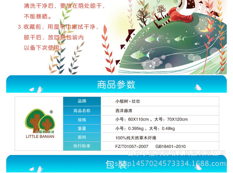 - 席子采用100%天然植物纖維編製而成,爽滑平整,抗菌防蟎,寶寶放心用~