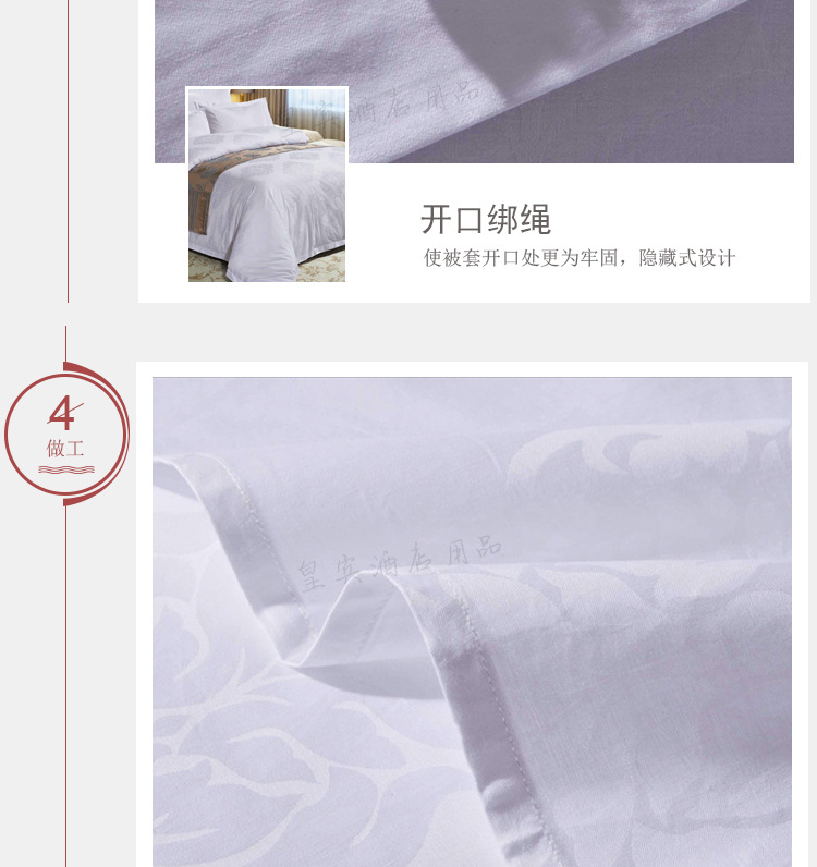 紹興皇賓紡織廠是一傢專業從事酒店賓館佈草酒店床上用品生產和批發銷售的企業。主要有:酒店四件套、枕芯、被芯、床護墊、床裙床旗等相關床上用品。從成立之日起就設定瞭打造國際優秀專業品牌,成就皇賓百年夢想的企業願景,我們企業秉承誠信進取銳意創新的企業精神以最新、最完美的姿態,生產出優質的產品展現在廣大客戶麵前。
