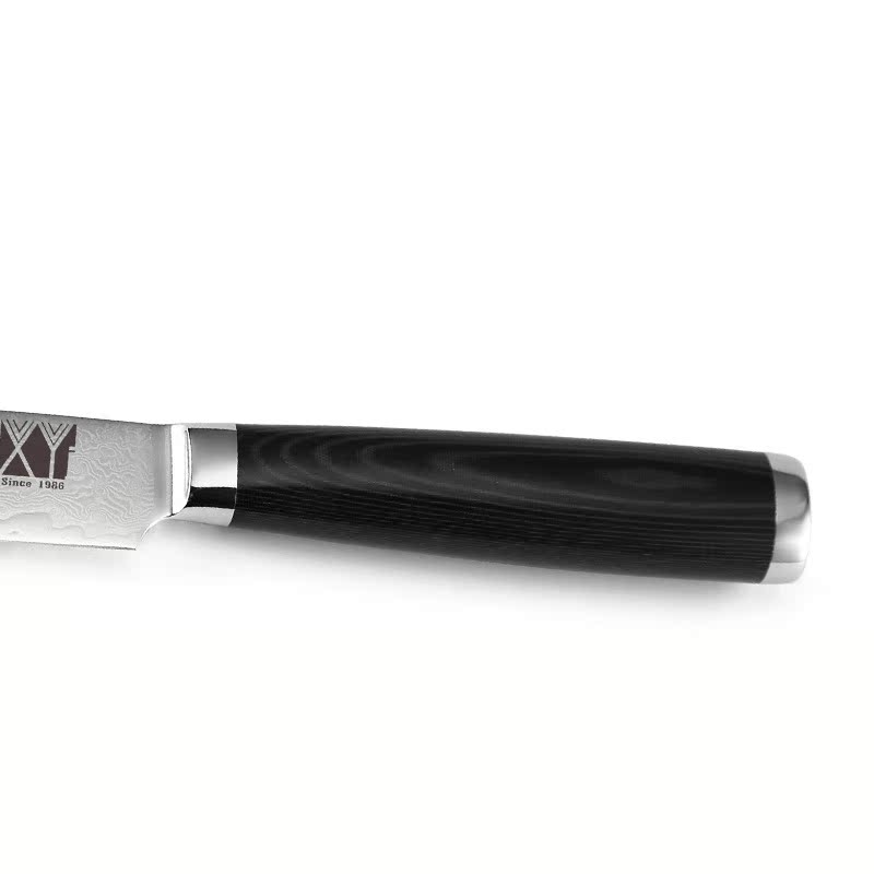 【料子】:刀身為進口大馬士革鋼製造,優質鋼材通過反復鍛打,呈現天然鍛打鋼材紋路,鋒利無比,刀柄采用越南上乘Pakka木原材料結合傳統手柄鍛造工藝,手感輕松,裁切順暢