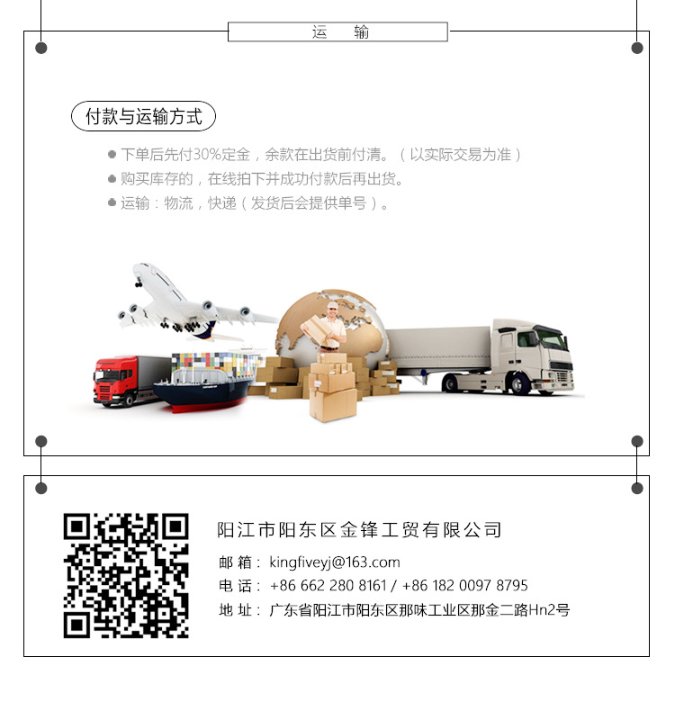 “金鋒” 以“誠信”作為經營之本,我們對售出的每一件商品的的質量負責,對有質量問題的商品實行無條件退換貨,並承擔往返運費;