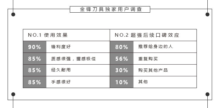 “金鋒”專業做刀10年,因產品實用,款式時尚,質量保證,價格適中,深受廣大客戶朋友的贊譽和選購。非常感謝您對“金鋒”的厚愛,我們不但為您提供優質的商品,我們將竭誠為您提供最好的服務!