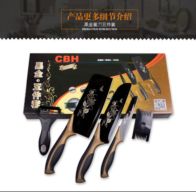 跑江湖產品百年薔薇刀五件套廚房用品刀具套裝不銹鋼廚具地攤