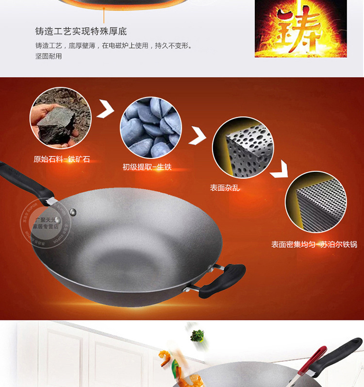 蘇泊爾鍋具鐵鍋32cm無塗層炒鍋鑄鐵鍋電磁爐鍋鐵炒鍋FC32E2