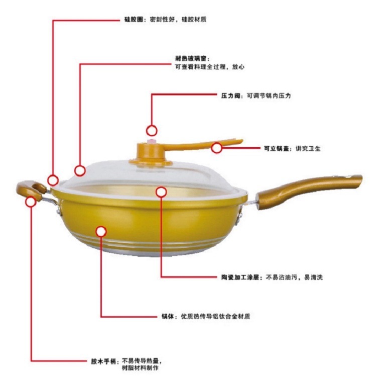 鍋壁:金色陶瓷塗層,不易脫落,不會掉色,有效抗高溫,確保長時間光澤亮麗。