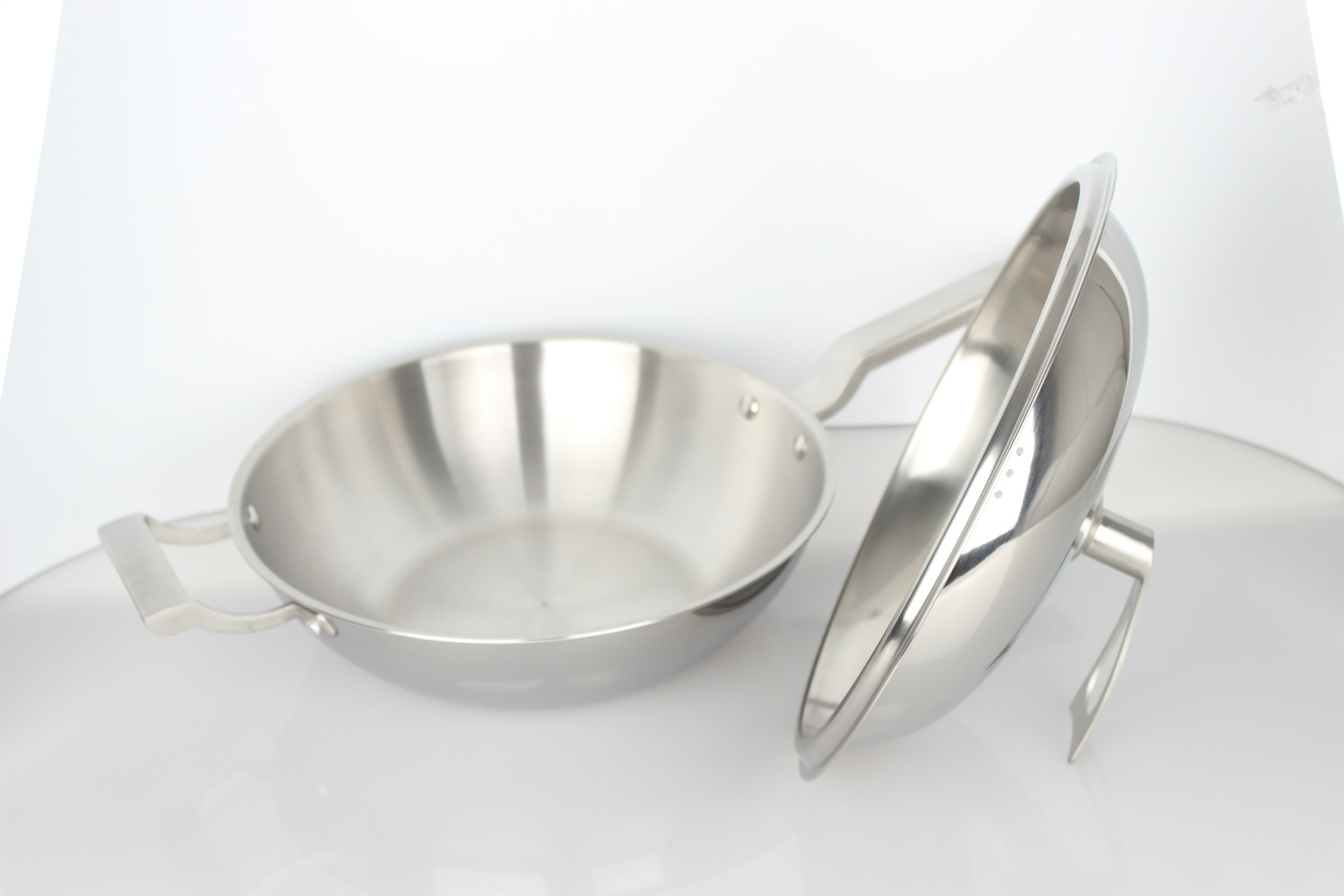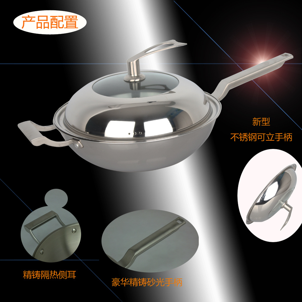 廠傢直銷一件代發德國工藝304三層復合鋼無油煙炒鍋可定製LOGO
