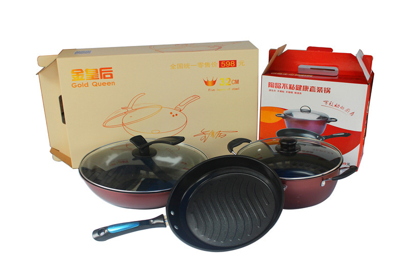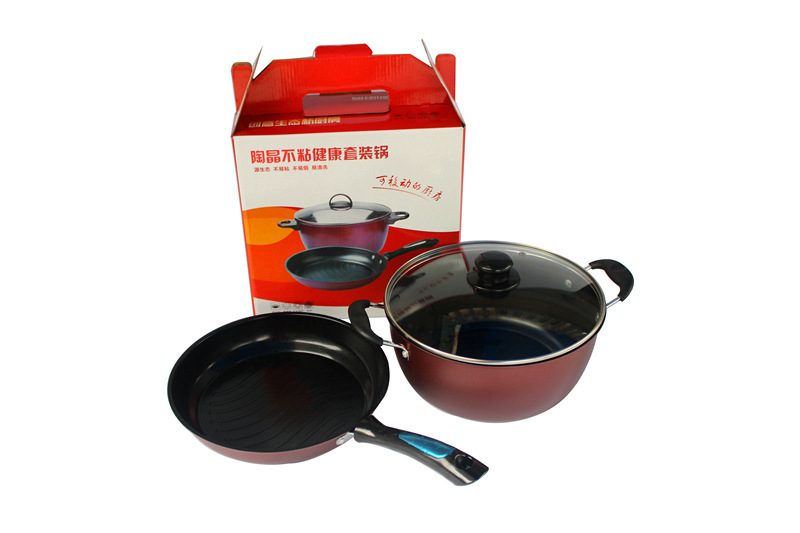 陶晶不粘鍋6件套 三鍋兩蓋加一蒸盤 陶晶無油煙不沾鍋 炒鍋 鍋具