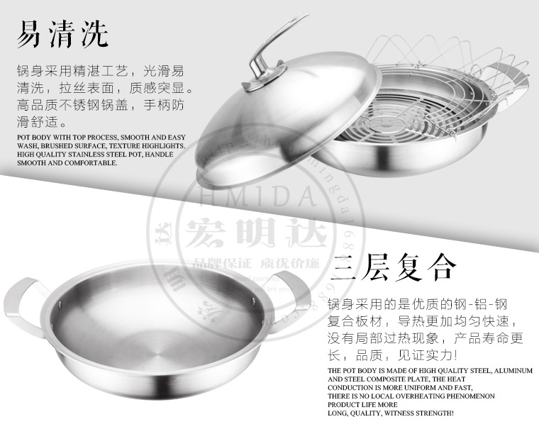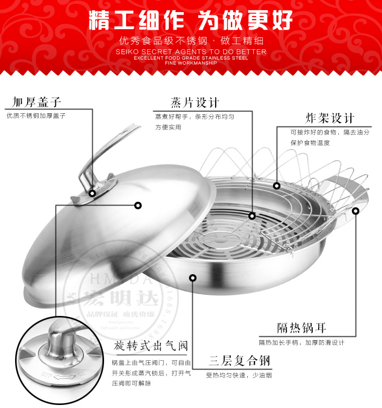品名:不銹鋼皇後無水蒸鍋 不粘鍋炒鍋