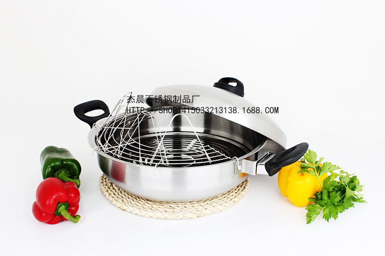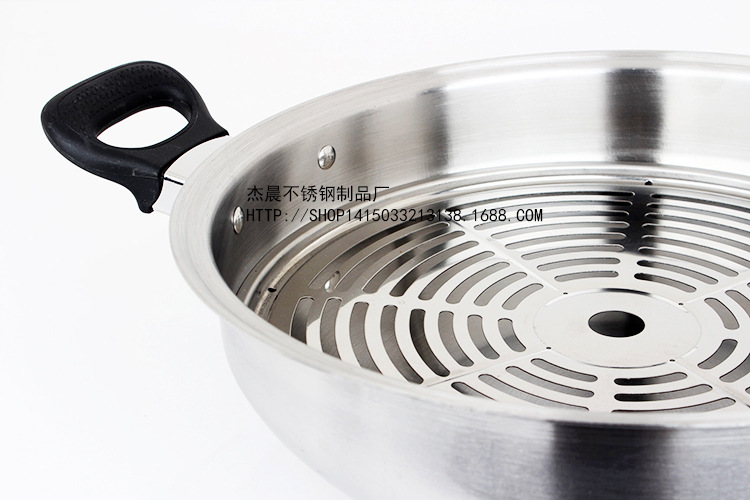 不銹鋼材料為基材,一次精鑄成型,整合傳導、對流、輻射原理,導熱系數達到 175 ,是鐵的 4 倍,傳熱快,受熱均勻,無局部高溫,在烹飪過程中,控製在食油裂解和揮發的臨界溫度( 240 ℃)內後,炒菜不易產生油煙。