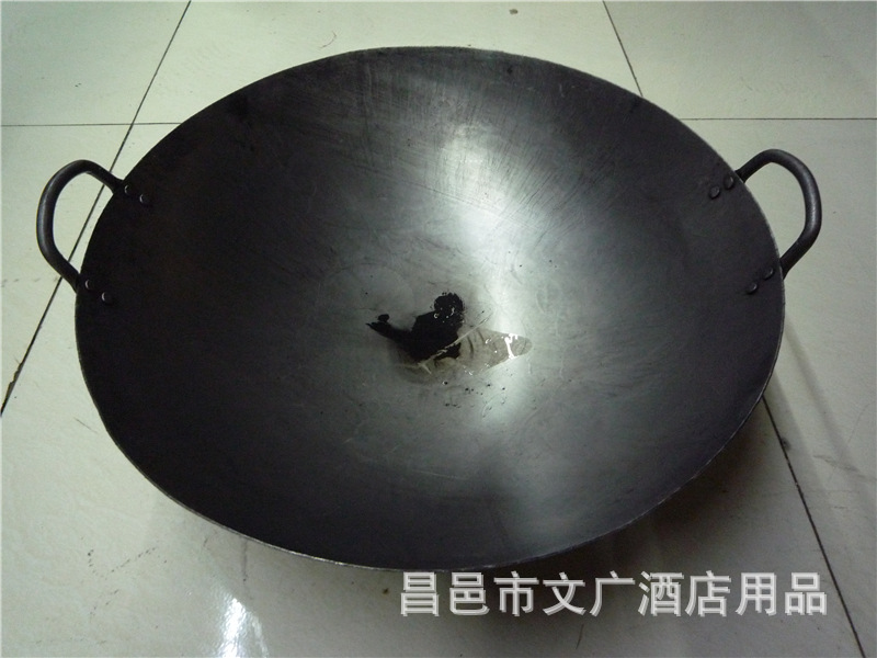 用黑鐵皮鍛壓或手工捶打製成,具有鍋坯薄,傳熱快的性能。