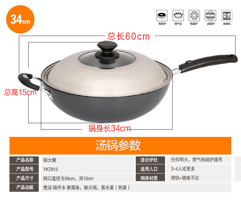 3、產品采用優質鋼材拉伸成形,經過特種技術打磨後使表麵形成自然紋,適宜使用鋼具鍋鏟兼具有輕便美觀耐用節省煤氣或電等優點。