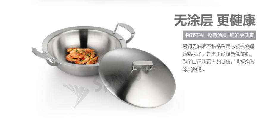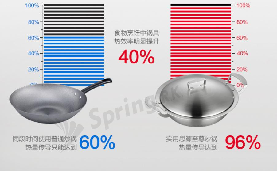 5、無煙---不需要大火煮食,隻要油的溫度不超過240度<油的裂變溫度>,是無任何油煙的,不受油煙危害,保護廚房環境,保護肺部健康。