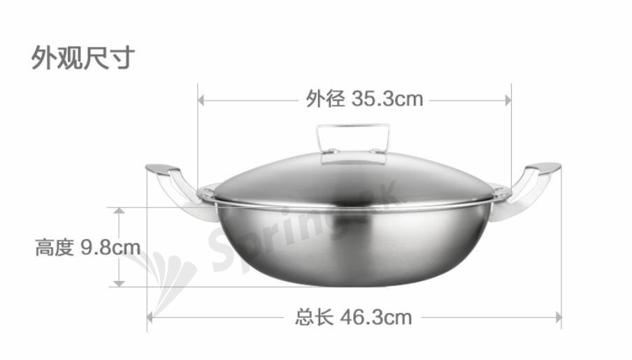 8.不銹鋼復合健康鍋嚴禁長時間空鍋乾燒,否則將會導致鍋體變形,從而影響美觀。