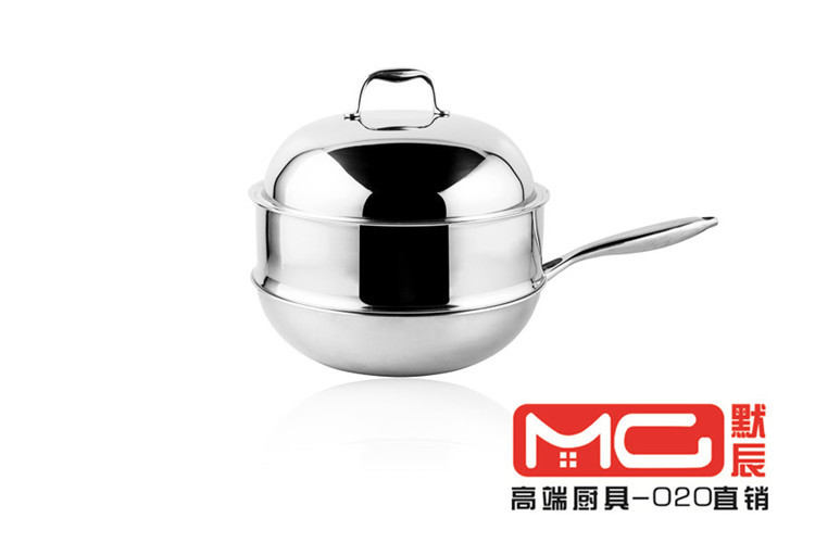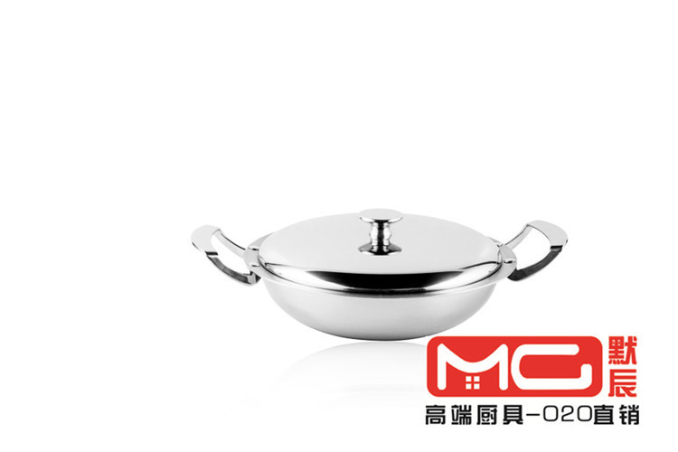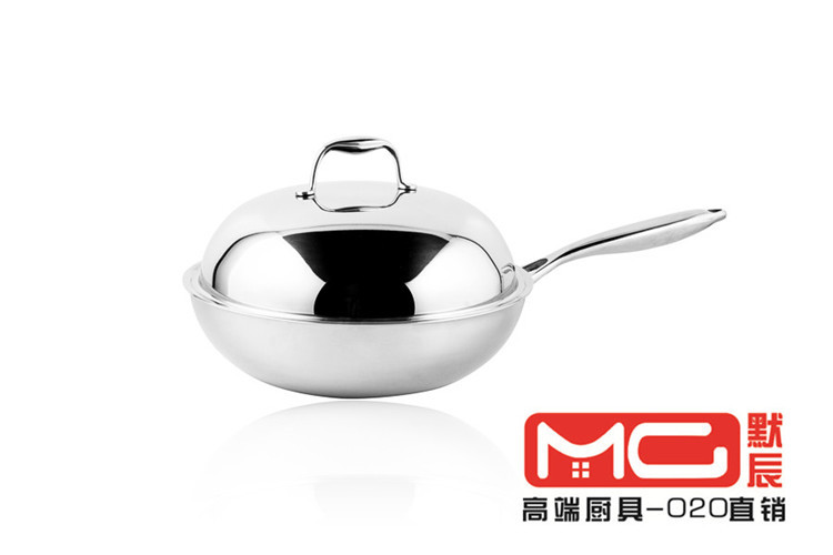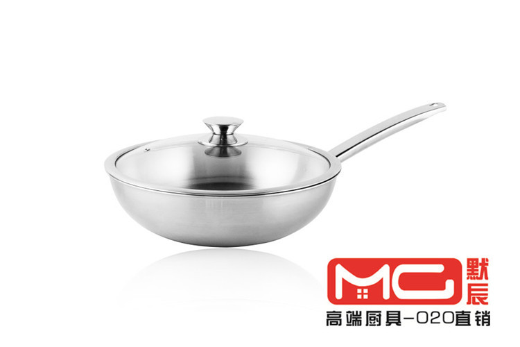 默辰MC 304不銹鋼炒鍋無油煙無塗層健康物理不黏鍋全鋼手柄鍋炒鍋