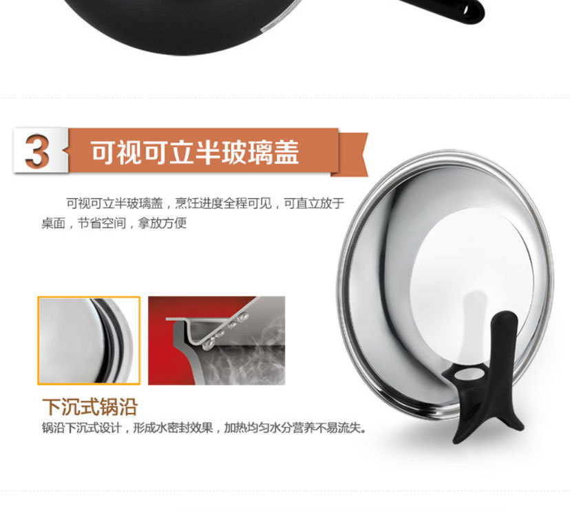 - 不銹工藝處理鍋身,鍋體異常堅硬,耐磨、耐酸堿性能卓越,達到超強不銹的效果;