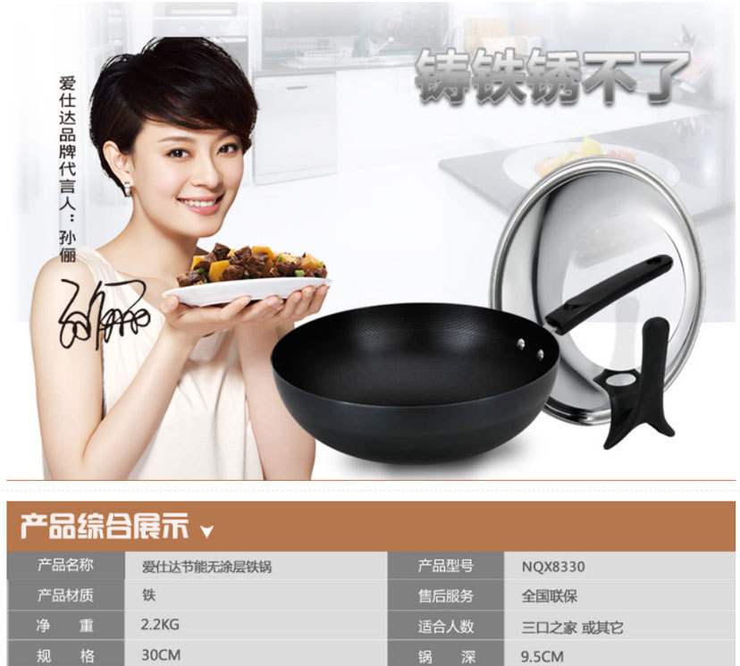 【產品名稱】:節能繡不瞭無塗層鐵鍋