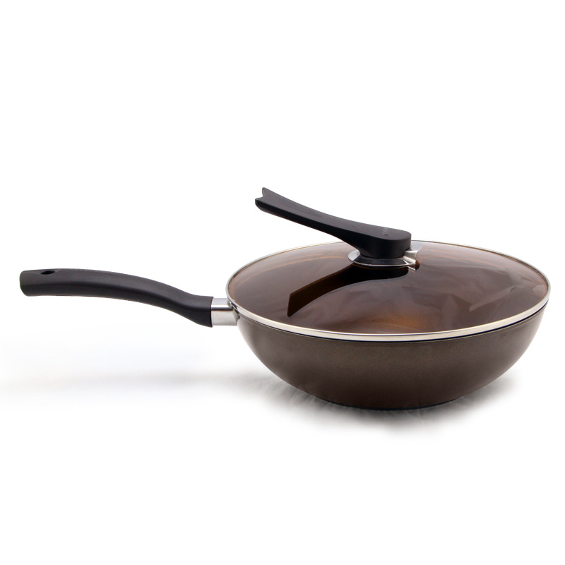 - 品名:茶色鏡蓋搪瓷炒鍋
