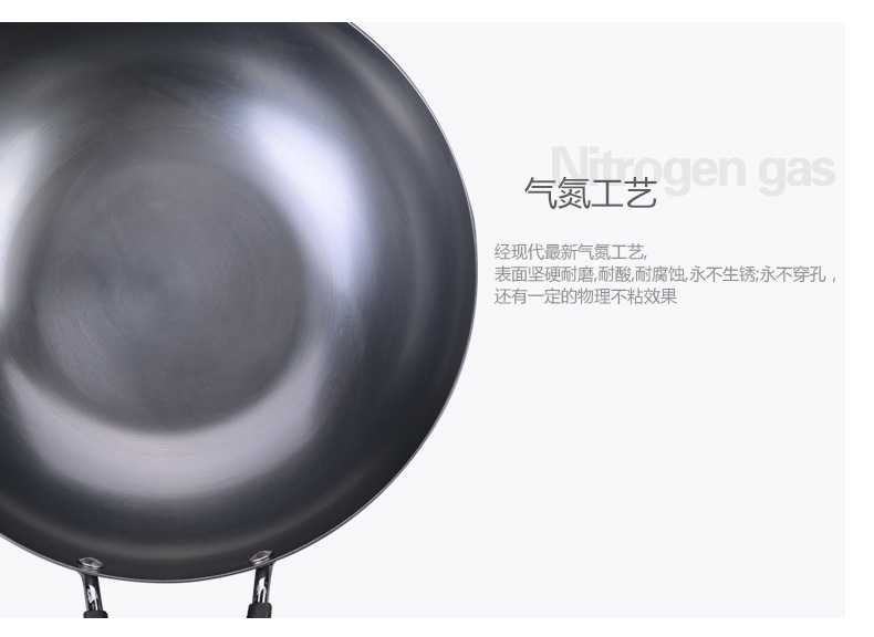 2.經現代最新氣氮工藝,表麵堅硬耐磨、耐酸、耐腐蝕、永不生銹;永不穿孔,還有一定的物理不粘效果;