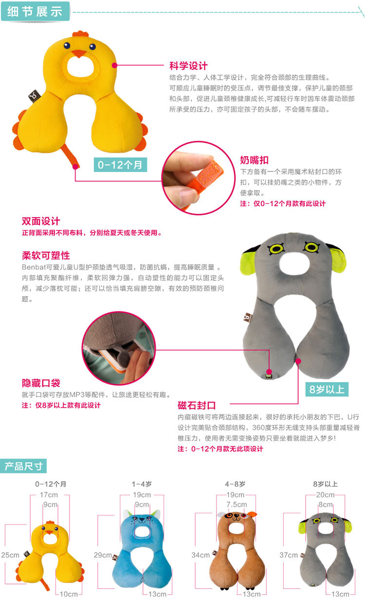 這款U型枕很多寶媽都說偏小,也經常被問到買多大合適,店主建議寶媽如果想要買正合適而不是想要用的久一點的話嚴格按照體重購買(而不是年齡),如果是兩款的交叉值,可以買大一號,比如16KG,可以買4-8歲的瞭,這中間的交叉值是為瞭頭圍的一個緩沖。